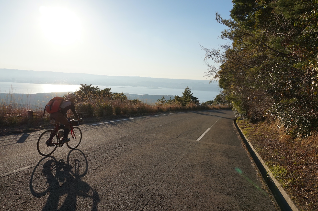 一方で西側は、錦江湾へダイブしていくような爽快なダウンヒル。最後の最後まで桜島らしい大迫力の地形を味わうことができますよ。標高200m~300mの高さとは信じられない、第一級の山岳道路の雰囲気を備えています。