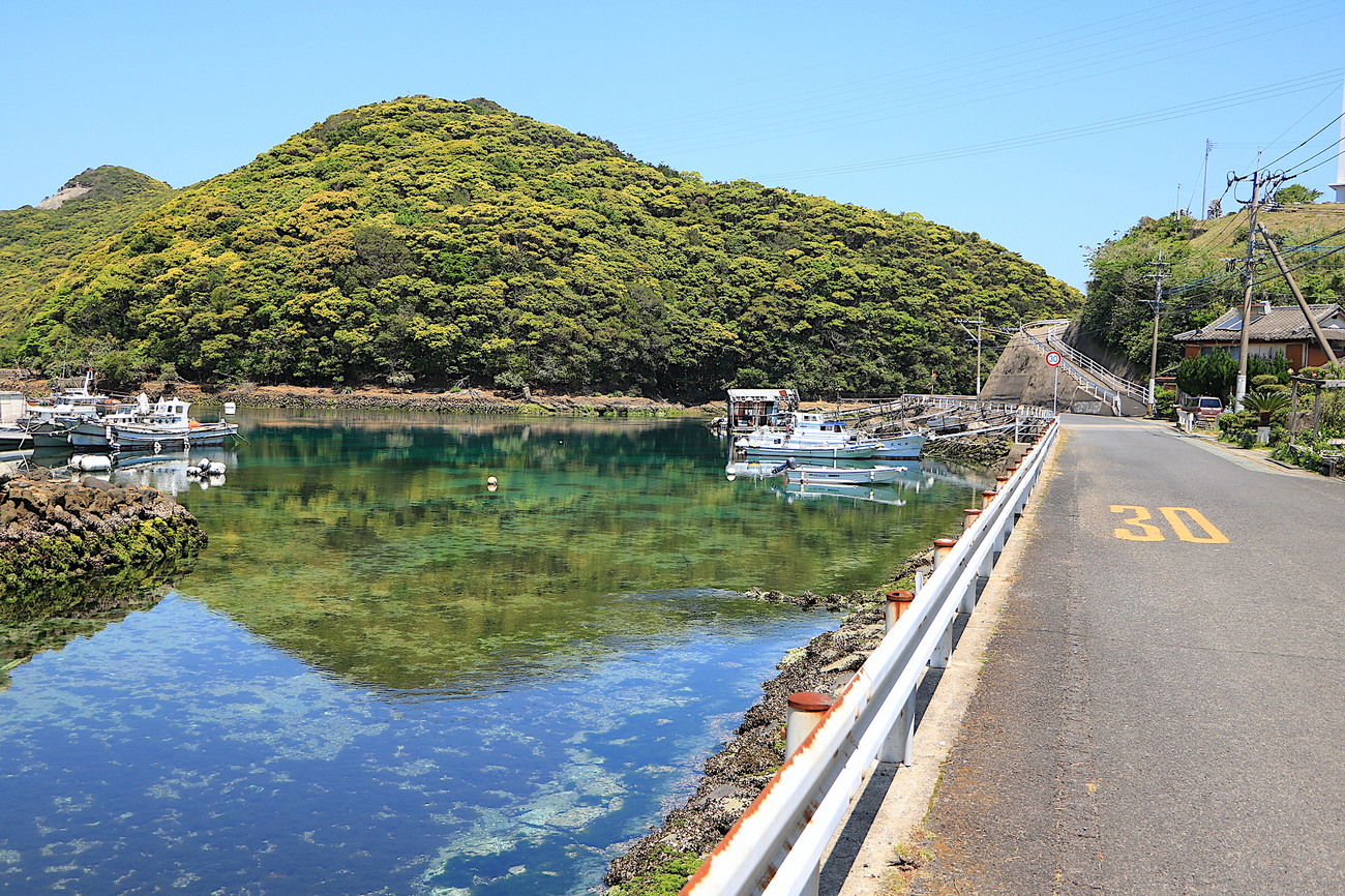 九州の西の最果てにある五島列島。世界遺産に登録されている祈りの島は、名前のない絶景道の宝庫です。筆者イチオシの道が、若松島から日島(ひのしま)まで約15km続く県道169号線。若松島の入り組んだ海岸線を走ったのち、4つの島をアイランドホッピングすることができます。