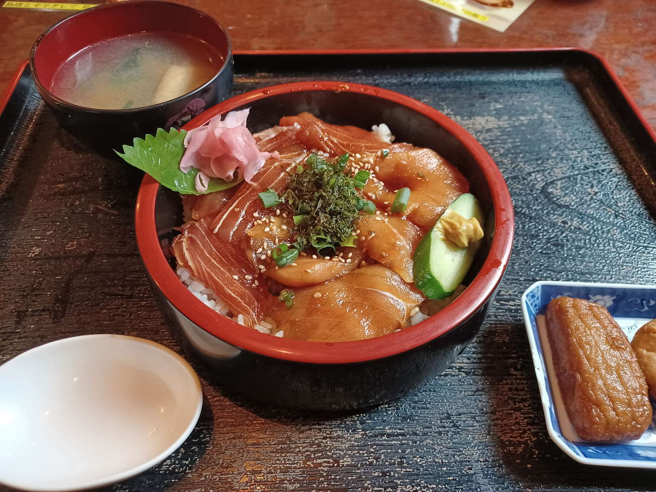 三根地区にある、大衆居酒屋&定食屋さん。定番の居酒屋メニューだけでなく、八丈島の名物料理も堪能する事ができます。お店の前にいる看板猫達のお出迎えを受けて入店。筆者が特にオススメしたいのは島寿司丼!キンメダイ、シマアジ、メダイなど、島で獲れる魚の切り身を醤油漬けにしたものがご飯の上に敷き詰められています。