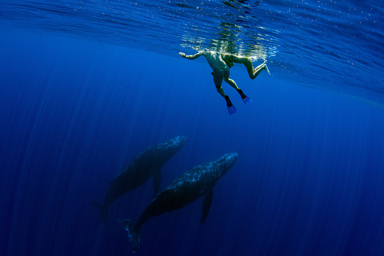 ホエールスイムとは文字通り、クジラと泳ぐアクティビティのことです。野生のクジラが対象となり、頻繁にクジラが観察できる各地域ではホエールスイムツアーが開催されています。ただし、クジラと泳ぐためにはクジラと私たちの安全が確保された状態が前提となるため、ツアーによって個人の泳力レベルが定められていたり、クジラにストレスを与えないよう地域特有のルールが設けられていたりと条件があります。そのため事前に参加したいツアーやローカルルールを確認し、自分自身がすべてクリアしていることが大切です。