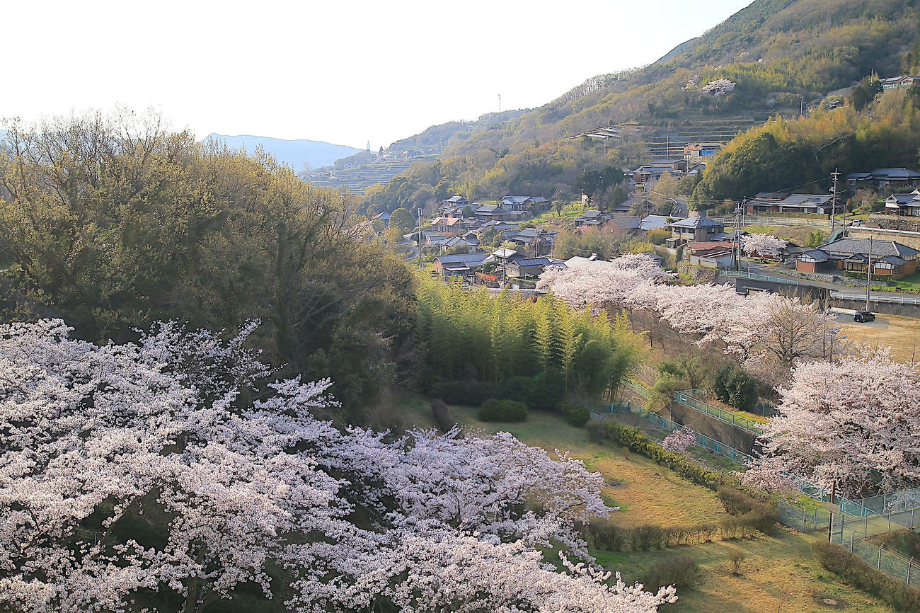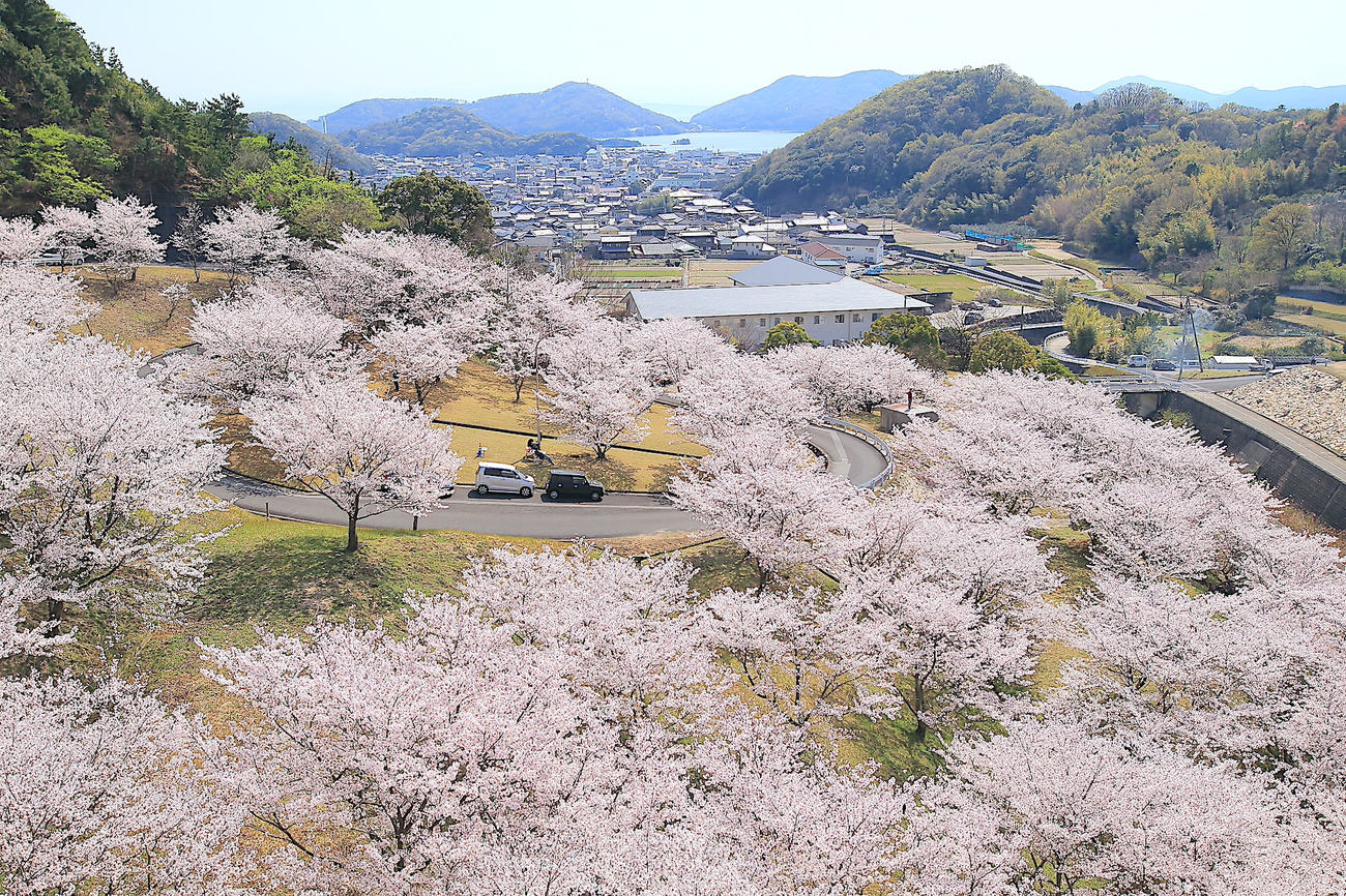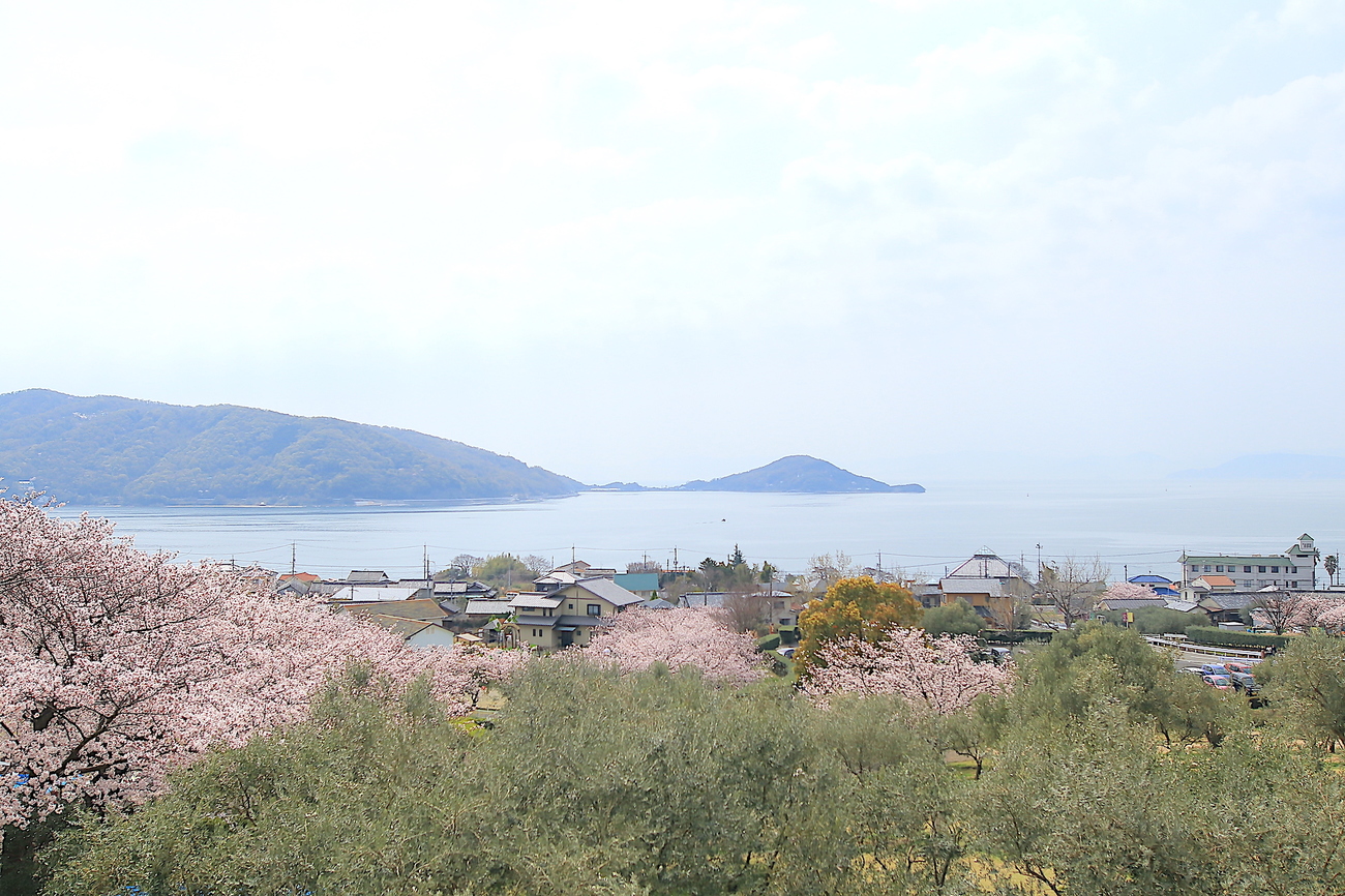 瀬戸内海と桜、オリーブが