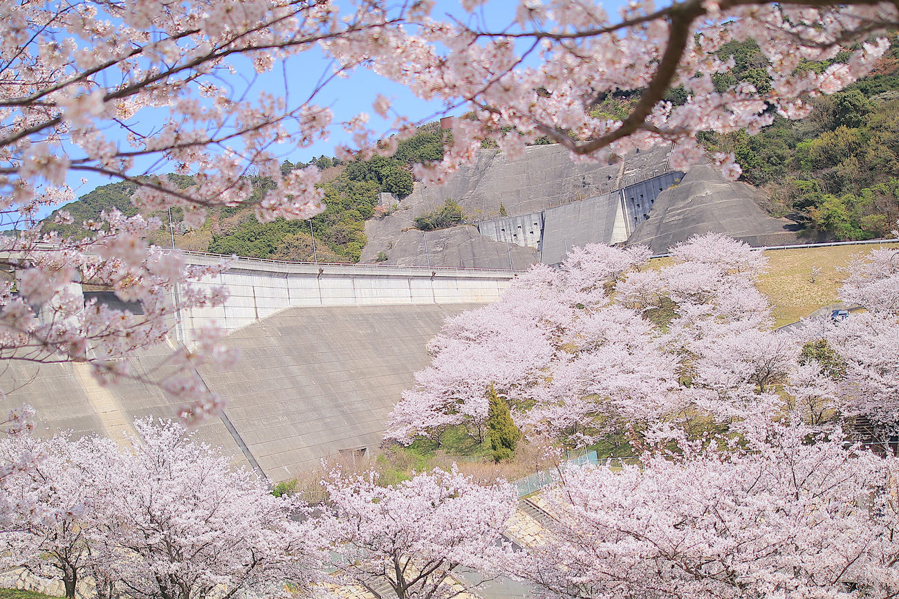 渓谷からなる島ということを物語っているように、小豆島に設けられた4つのダム。それらのダムが桜の名所ということを知っていれば、かなりの小豆島ツウだと思います。まず「殿川ダム」は、日本の棚田百選にも選ばれている中山千枚田に隣接するこぢんまりとしたダム。寒霞渓の西側・四方指山を水源とする伝法川の中流に佇み、小豆島の豊かな農業を支えています。そんなダムは春になると、優しい色合いのソメイヨシノに彩られます。静けさに包まれ、日本の原風景に訪れた春をほっこりと感じられる穴場スポットです。一方で、寒霞渓の東に位置する「粟地ダム」は、ダムの下を桜が埋め尽くすお花見スポット。下から桜の天井を見上げる構図と、上から桜の絨毯を俯瞰する構図、息を呑むほど美しい風景には、思わず感嘆してしまいます。