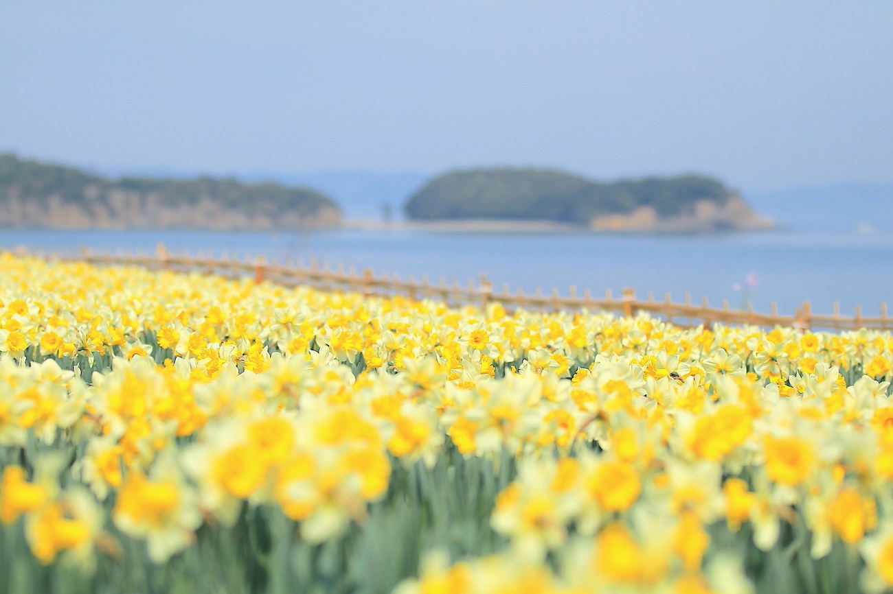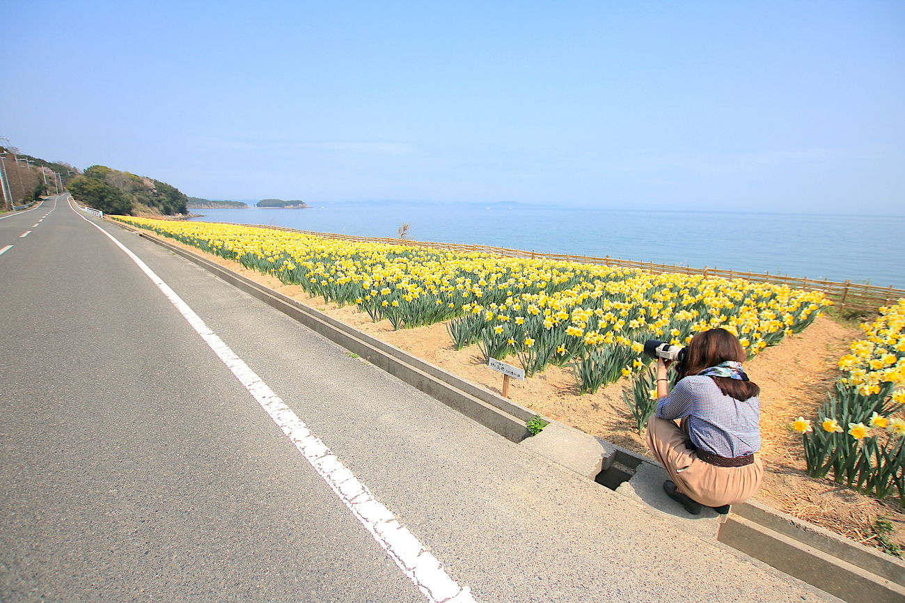 島の至る所がピンク色に彩られる春の小豆島ですが、実は桜以外にも花の絶景のオンパレードを見せてくれます。その代表例が、小豆島北西部を走る「水仙ロード(県道253号線の一区間)」。土庄港から屋形崎を時計回りに走ると、海を背景にして咲き誇る水仙畑が広がります。一面、黄色と青色の対比に包まれる道はとても爽快!心躍る風景を横目に気持ちの良い道を駆け抜けましょう。また桜の時期には、異国情緒漂う小豆島の雰囲気にぴったりなミモザも満開を迎えます。見どころスポットは島東部にある「タケサン農園」さん。ソメイヨシノより少し早いのですが、2月下旬〜3月上旬には、ミモザと河津桜の共演を鑑賞できます。パステルカラーの風景は心洗われる美しさ。いよいよ迫る春の訪れを思いっきり感じられる場所です。