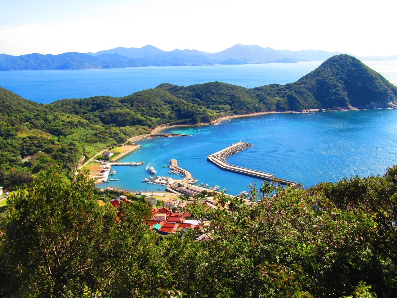 また、島の中央部には「しま山100選」にも選定されている標高148mの金毘羅山という山があります。山頂からは、漁港や集落を見下ろすことができ、関門海峡の北西に広がる響灘を一望できます。その風景はまさに絶景!運が良ければ角島、沖ノ島まで見えることも。圧倒的な絶景にしばらく心を奪われること間違いなしです。