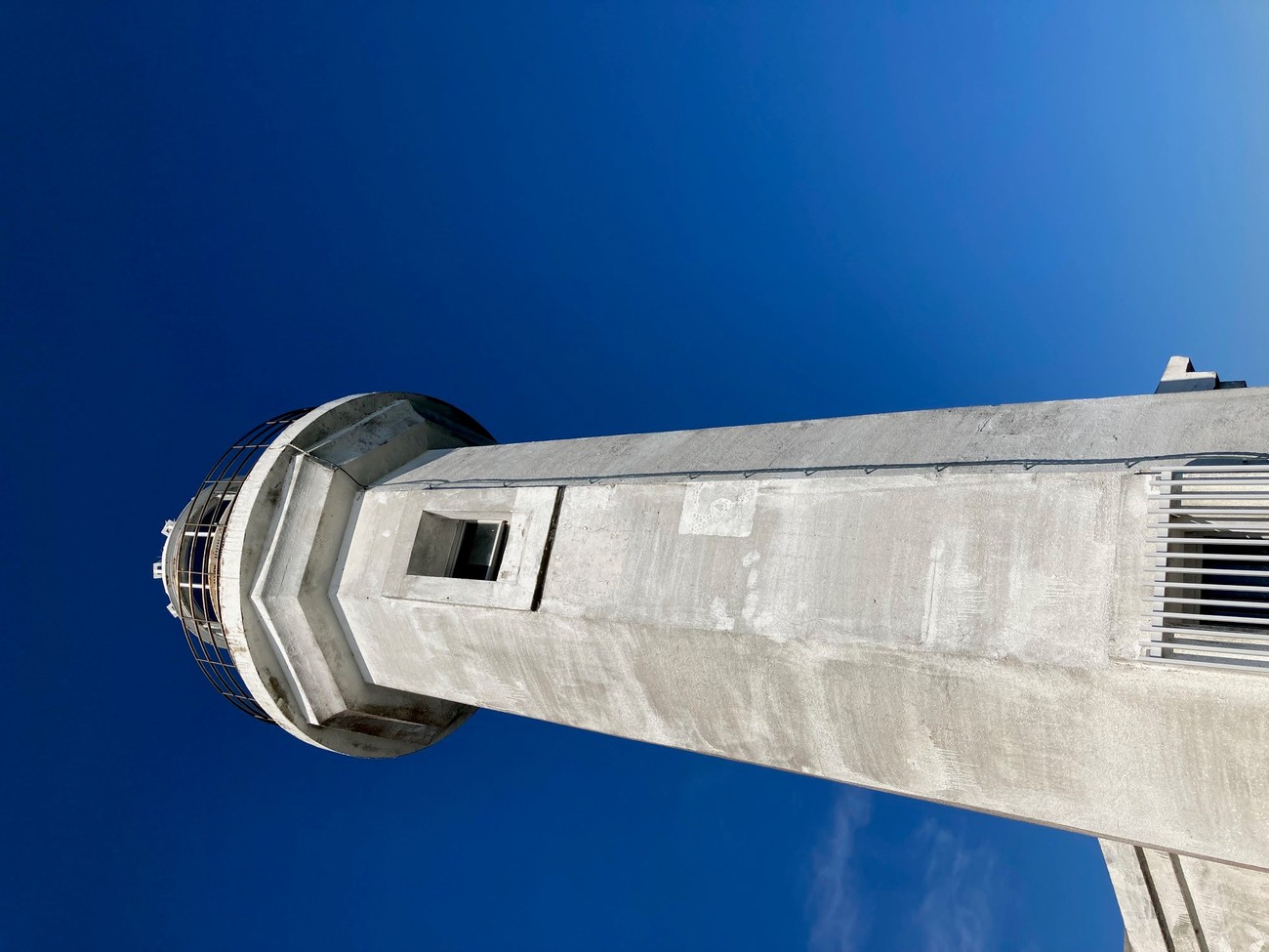 また、金毘羅山から下りさらに山道を進むと、蓋井島灯台にたどり着きます。こちらは昭和26年に日本で初めて風力発電が導入された灯台として知られています。(現在では電源は商用電力に切り替えられています。)灯台に上ることはできませんが敷地内には入ることができこちらからも響灘を一望することができます。