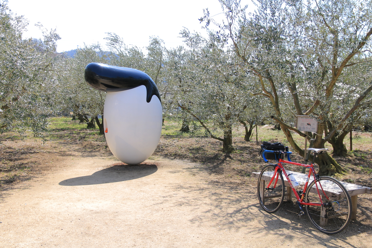 2008年からはじまった瀬戸内国際芸術祭の会場の一つである小豆島。毎回たくさんのアート作品が制作されますが、中には会期後も撤去されず、一定期間展示される作品も多いです。小豆島を再訪するたび、アート作品をつなぐようにルートを組んでいたため、必然的に旅の道中で寄り道をする癖がつきました。ずっと走り続ける自転車旅も良いですが、機動力の高い自転車だからこそ、フレキシブルに乗り降りすることで、旅の可能性は一気に広がります。「いかにいろいろな要素を寄り道に盛り込むか?」この面白さを小豆島から学びました。