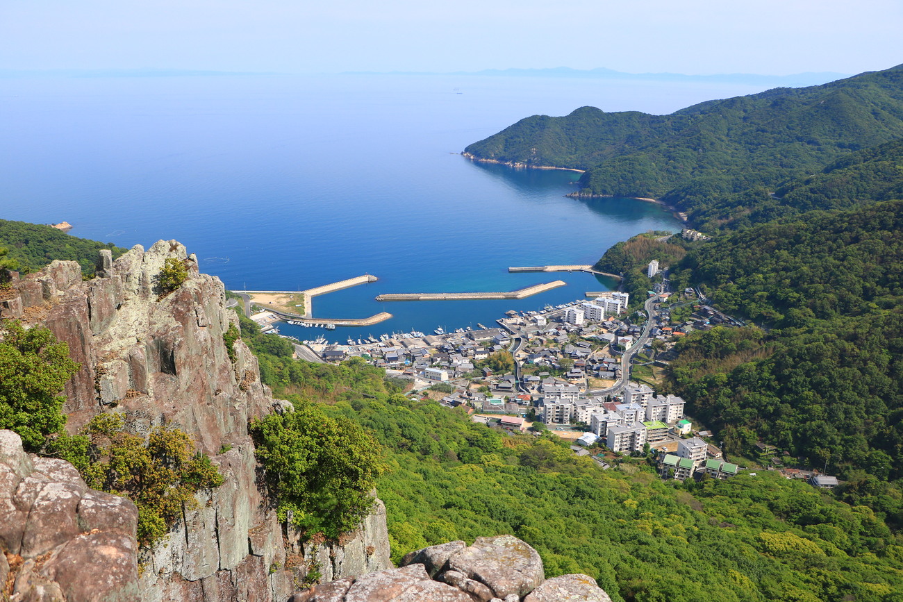 島を隅々までめぐっていると、残すところ訪れたことのない場所は山の上だけに。高台からの絶景を求めて、気づいた時には自転車を降りていることもしばしば。標高は低いのですが、海から山まで一気に立ち上がる離島の山らしい高低差を味わえます。眼下には真っ青な海を望み、その周囲にはダイナミックな地形を覆い尽くす山肌の緑。青と緑の鮮烈なコントラストに心を奪われ、爽やかな風がそよぐ山頂でクールダウンするひとときはたまりません。自転車旅の途中に登山を加えることで、一気に冒険感が高まるのもポイントです。