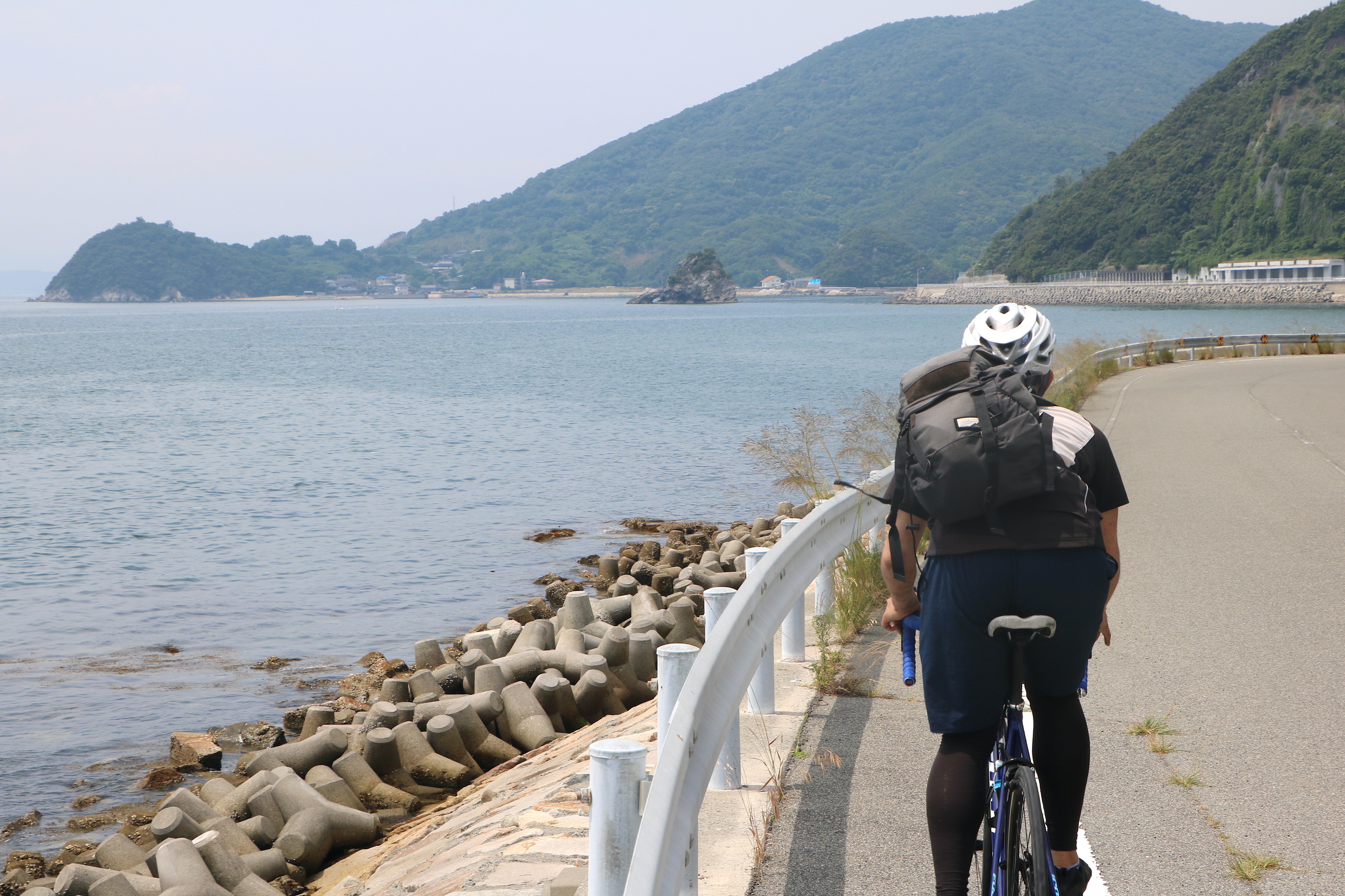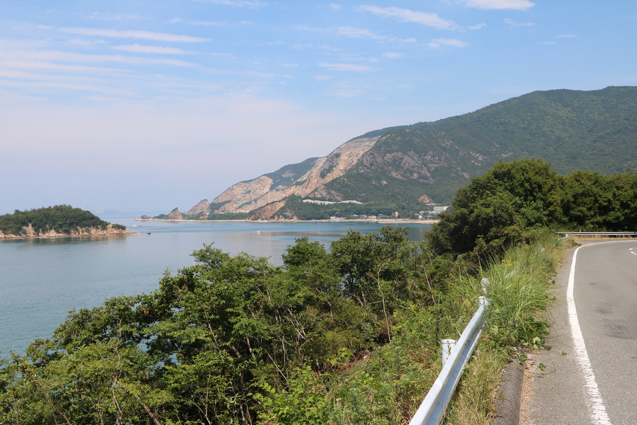 瀬戸内海に浮かぶ「小豆島」。こちらも神戸や高松、新岡山などから航路が整備されており、関西のサイクリストを中心に「マメイチ」として人気を博しています。中でも神戸から運行するジャンボフェリーには夜行便があり、弾丸スケジュールを組む際には重宝します。一周約80kmになる小豆島一周の魅力は大きく2つあります。1つ目は島内に色々な要素があるということ。瀬戸内国際芸術祭のアート作品や、エンジェルロード、映画・魔女の宅急便のロケ地となった小豆島オリーブ公園など、見どころがたくさんあり、一周するだけで一通り観光を楽しむことが可能です。2つ目は、海と山を繰り返す走り応えのあるコースになっているということ。島一周の獲得標高(自転車で走行している間の累積標高)約1,100mという数値が、山の島と呼ぶべき小豆島の地形を物語っています。中でも筆者が気に入っているのは、北部のダイナミックな採石場を見渡す区間と、瀬戸内の海道らしい情緒をみせる島の西部の前島エリアです。