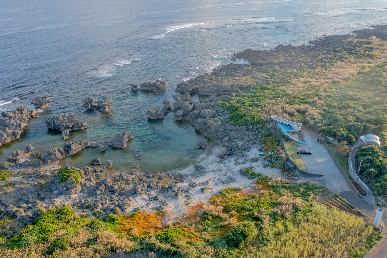 隆起サンゴ礁で出来た島なので、島の大半が石灰岩で覆われており、