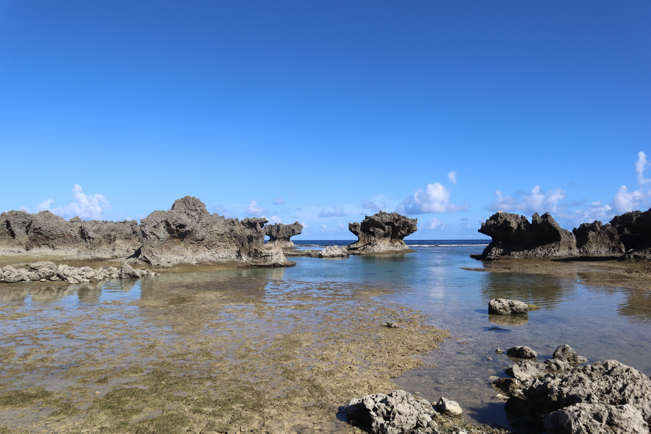 ウジジ浜はキノコのような奇岩が点在し、魅了してくれます。
