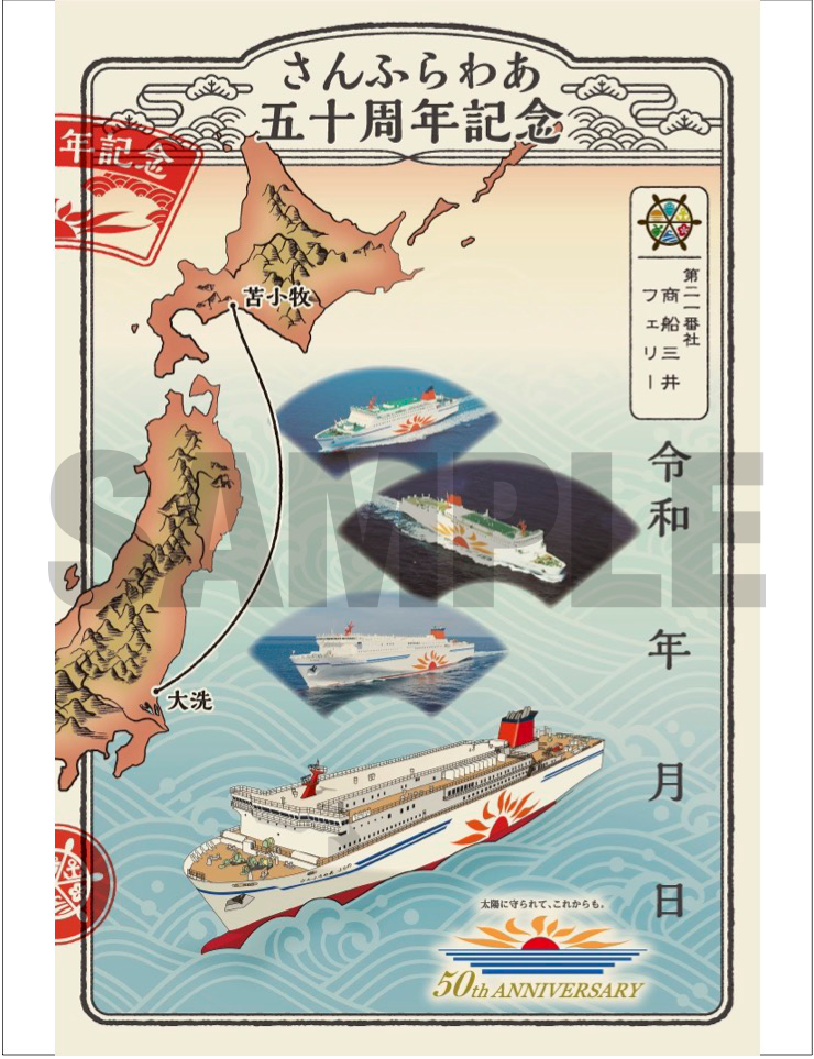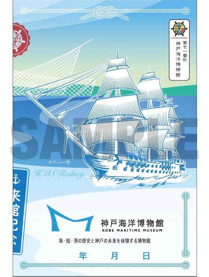 船員教育機関である独立行政法人 海技教育機構(JMETS)とのコラボ船印帳です。メインに描かれた船は、JMETSの練習船「帆船・日本丸」。 1984年に就航した大型帆船で、最速の帆船に贈られる称号を3度受賞したほどの高い性能を誇っています。JMETSでは数多くの実習生育成に活用されています。この印帳は「寄付金つきの商品」として販売され、収益の一部はJMETSを通じて船員教育に役立てられます。