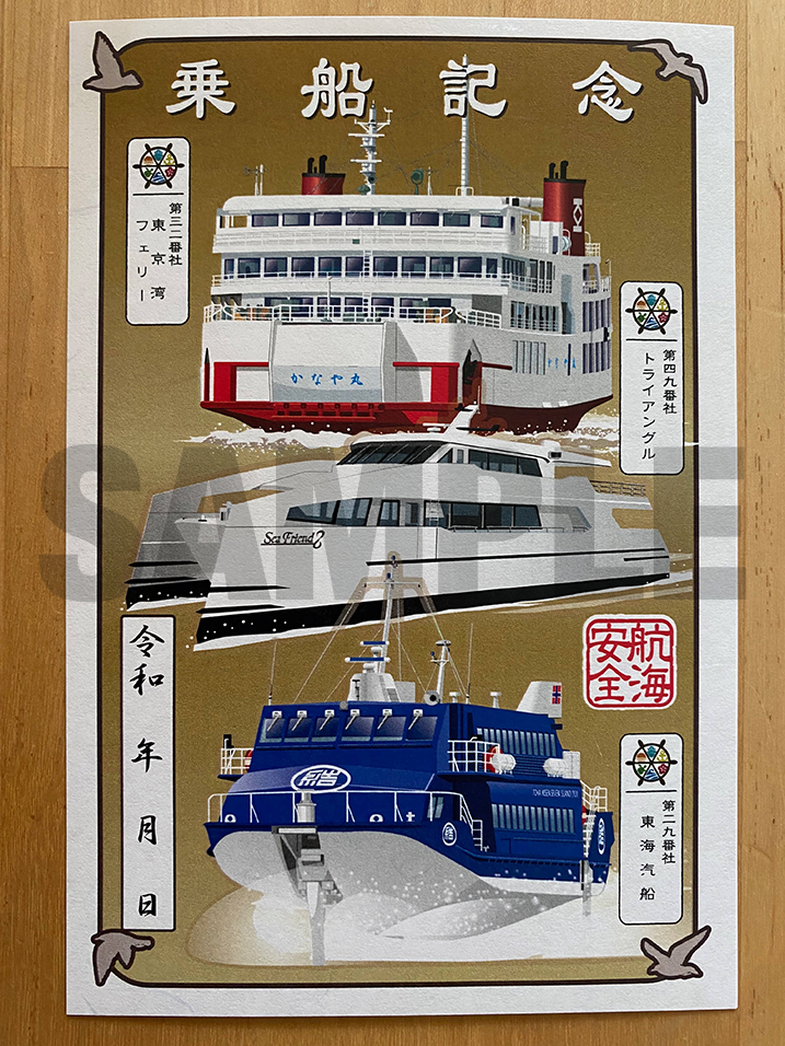 御船印は港や船内で販売しています。各社によって販売場所は異なりますので事前に公式HPを確認してください。