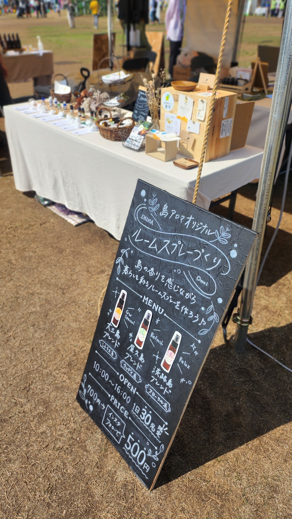 離島や各島の取り組みについて知ってもらおうと、SHIMA-Omoiブースでは3つのコンテンツを用意しました。1つ目は離島産グルメの展示コーナー。商品ごとにQRコードから購入できるカードを設置しており、島に移住した若い人たちが後継者不足の問題を解決するために生み出した商品など、各島の問題についてもお伝えしました。2つ目は2種類の離島ビールの飲み比べ。魚に合うビールや、島の特産物を使ったビールなど地ビールならではの珍しい味に惹かれ、購入したいという声も多く聞かれました。3つ目は島アロマを活用したオリジナルアロマのルームスプレーづくり。廃棄対象の果物の皮を使った精油などのアロマを用意し、フードロスに関心がある方にもたくさん参加してもらえました。ロハスフェスタに来場される方は積極的で、自ら話しかけてくださる方が多かった印象です。最初はビールを飲むためだけに来たというお客さんが、可愛らしいパッケージをきっかけにどこの島産なのかを尋ねてくださったり、「ここ行ったことある!」「友達がこの島出身なんです!」とご自身の島についてのエピソードを教えてくださったりと情報交換の場となりました。直接お話できたり、離島の商品を手に取ってもらうことができ、もっと近くに島を感じられるようなコンテンツづくりを続けていきたいと強く思いました。