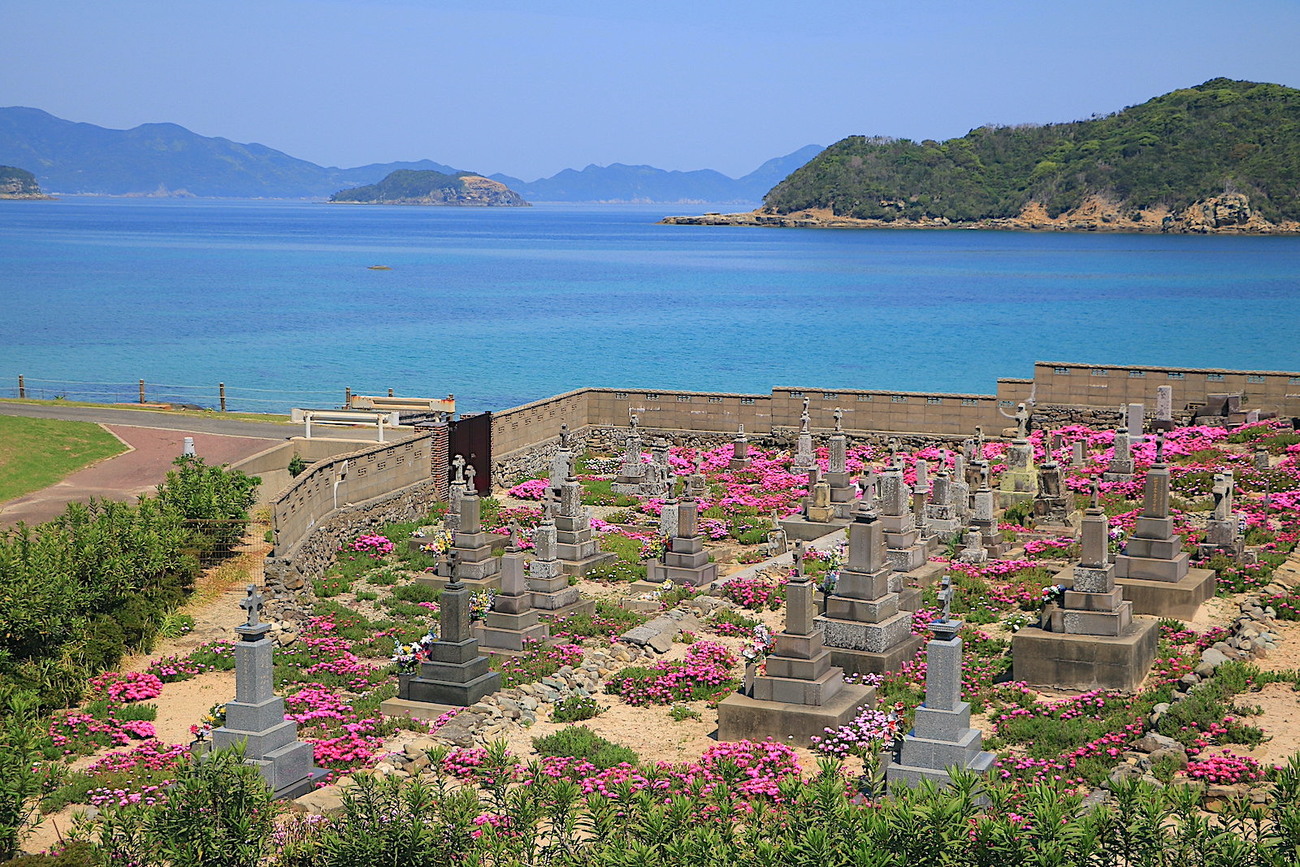 5日目の最終日は、世界遺産の一つ「頭ヶ島(かしらがしま)」を訪れることに。五島石を切り出して築き上げた頭ヶ島天主堂も素晴らしかったのですが、隣接するキリシタン墓地の中にピンクの花が咲く風景、そしてエメラルド色の海にも感動しました。そして中通島の中心部へ戻る途中に立ち寄った「ハマンナ」は、今まで訪れた五島列島の浜の中でも一段と美しく、旅の終わりを締めくくるに相応しいスポットでした。最後は五島うどんでお腹を満たし、名残惜しくも有川港から高速船へ乗って長崎へ。自然・歴史・人・食すべてに恵まれた4泊5日の五島列島アイランドホッピング旅を終えることができました。