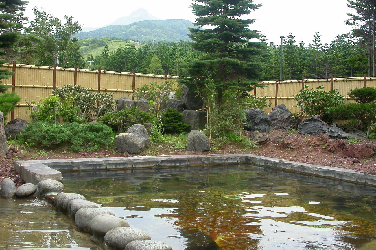 日本最北端の町・稚内市から西方30kmの海上に浮かぶ「利尻島」。利尻富士として親しまれる利尻山(りしりさん、標高1,721m)を水源とする栄養たっぷりの湧水が、名産のウニや利尻昆布を育み、独自の自然の循環を作り上げています。そんな利尻島には、2つの素晴らしい温泉が湧出しています。一つ目は、利尻山鴛泊コースの登山口近くにある「利尻富士温泉」。泉質はナトリウム-塩化物・炭酸水素塩泉で、しっとりと肌に馴染むお湯が特徴で、露天風呂から眺められる利尻富士の秀麗な佇まいが魅力です。お湯は循環ろ過での供給ですが、常時源泉を足し湯しているので鮮度も保たれています。