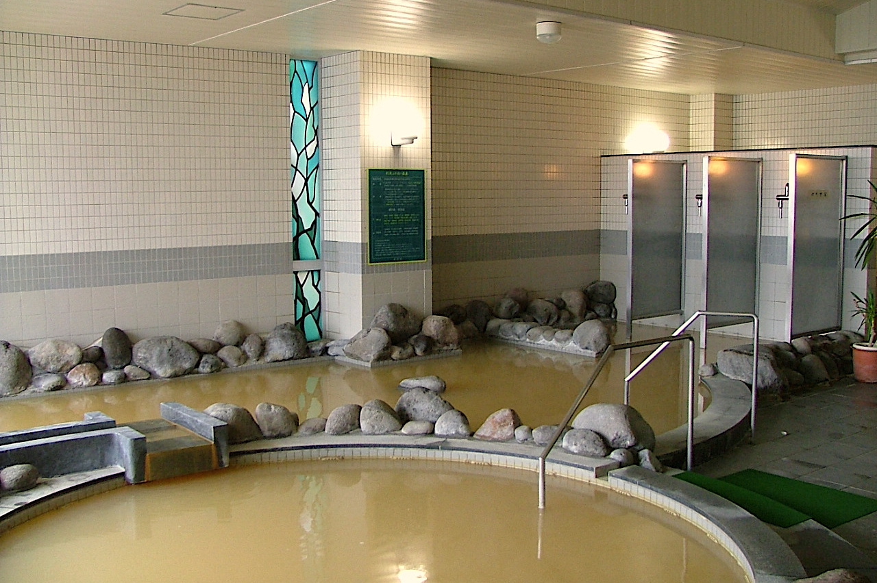 二つ目は、島の西部・沓形(くつかた)のホテル利尻にある「利尻ふれあい温泉」です。泉質は含二酸化炭素 - ナトリウム・マグネシウム - 塩化物・炭酸水素塩泉。空気に触れると茶褐色に色が変化するため、金の湯とも呼ばれ、国内トップクラスの炭酸水素量を含む素晴らしいお湯です。大浴場は循環ろ過での供を主体としていますが、中央には源泉にそのまま浸かれる浴槽があり、一度入れば清涼感や美肌効果を感じられるでしょう。ぜひ利尻山登山や島の観光と併せて、最果ての島ではしご湯を楽しんでみてください。