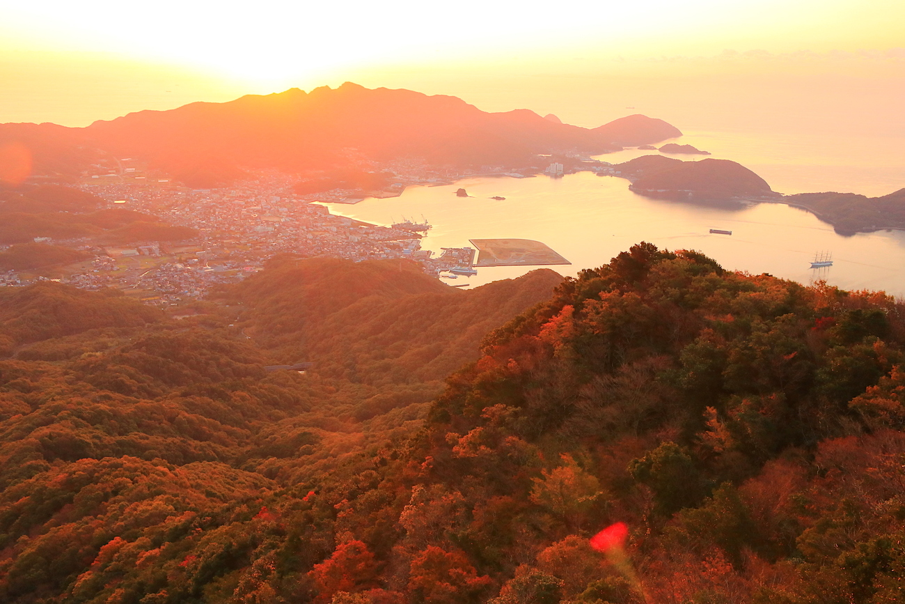 『長崎と天草地方の潜伏キリシタン関連遺産』として、世界遺産にも登録されている五島列島。その主要5島のうち、一番南に位置しているのが「福江島」です。シンボルは、流線型が美しい「鬼岳(おんだけ、標高315m)」。福江港へ入る時、真っ先にその山容が目に飛び込んできます。