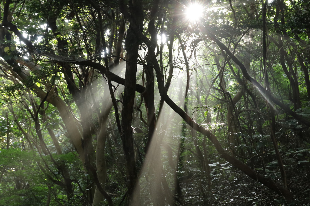 中でも、南の太一岬をぐるりと巡るコースは、緑のトンネルと海を見渡す絶好のハイキングコース。港の漁業の風景とは一線を画し、島の秘境というべき自然が垣間見れます。朝の光芒シャワーは格別です。