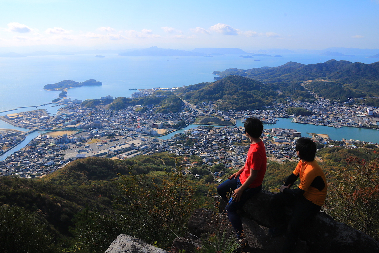 オリーブの島として有名な「小豆島(しょうどしま)」。島全体に渓谷が発達しており、名山の宝庫です。その中でも、抜群のパノラマを楽しめることで、密かに知られる山が「皇踏山(おうとざん、標高394m)」。観光名所のエンジェルロードからほど近い場所に登山口が位置しています。