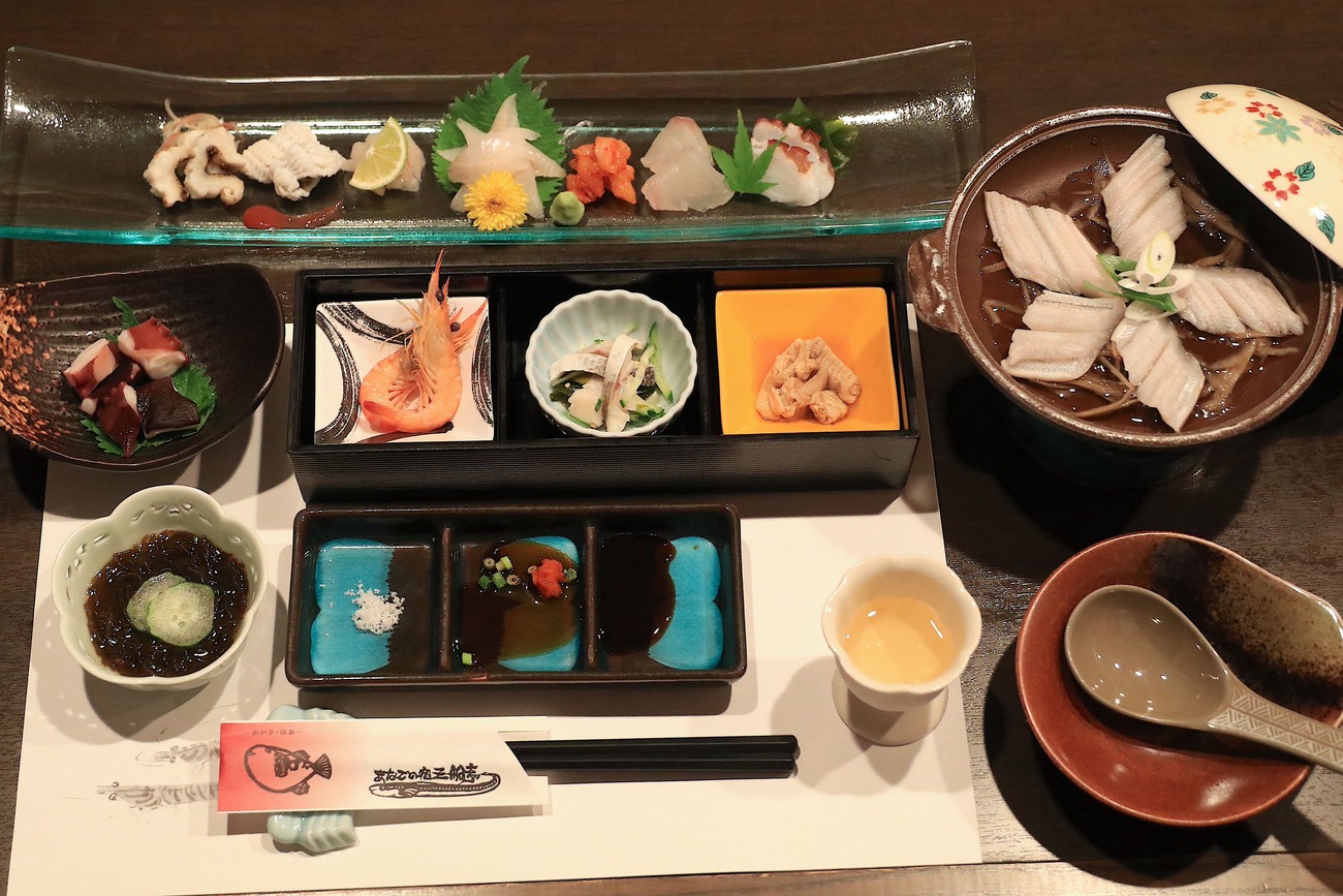 篠島を訪れるなら、島の味覚を味わい、贅沢な時間を過ごせる特別なお宿に泊まってみるのがおすすめです。中でも私のイチオシのお宿が「あなごの宿 三船亭」。あなご漁師さんが営むお宿では、あなごを味わい尽くすフルコースを味わえます。穴子のお刺身や一本寿司、柳川風など、今まで味わったことのない穴子の美味しさを堪能することができますよ。さらに、お料理だけでなく、常滑焼の浴槽を備えた3つの貸切風呂もあり、お宿の施設も充実しています。他の日間賀島や佐久島と比べて、篠島のお宿は古き良き離島の風情と過ごしやすくお洒落な雰囲気が調和している宿が多いです。朝夕のビーチを歩いたり、伊勢神宮とつながりのある太一岬や神明神社を訪れてみたり、何気ない島の風景を撮影したり、のんびりとした時間を過ごしてみてはいかがでしょうか?
