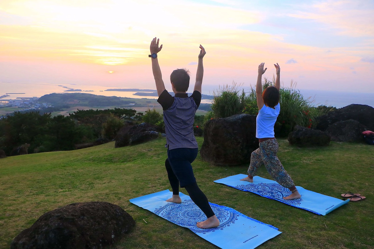 久米島の魅力の一つは、現地で楽しめる多彩なプログラムが充実していることです。久米島の歴史や文化に触れつつ、地元の方々との交流も楽しむことができ、まさに一石二鳥の体験が待っています。例えば、久米島の伝統工芸品である久米島紬の製造と継承のための後継者育成を行う久米島紬事業協同組合が運営する「ユイマール館」では、久米島紬(くめじまつむぎ)の織り染め体験ができます。一つひとつ自分の手で織りながら、久米島の伝統工芸に没頭する時間は格別です。染め体験では、どんな色や風合いになるかは広げてみるまで分からないという楽しさもあります。また島の自然の中で行うヨガもおすすめです。裸足になって朝ヨガを楽しむこともできますよ。プログラムを提供している方々には、島を愛する地元の人々や久米島の魅力に惹かれて移住してきた方も多くいらっしゃいます。彼らとの会話で、さまざまな興味深い話を聞けるほか、久米島のユニークな島人を紹介してもらえることもあり、思いがけない出会いが待っているかもしれません。また、オフシーズンの沖縄地方は曇りがちな日が増えますが、久米島では天気が悪くても楽しめるプログラムが豊富です。事前にこれらを計画に組み込んでおけば、天候に左右されずに旅を満喫できますよ。現地での体験をメインにしつつ、晴れ間が見えたら島の絶景を巡るプランもおすすめです。