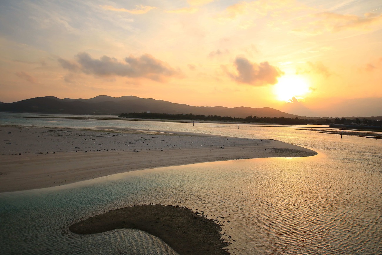 「球美(くみ)の島」として知られる久米島は、その美しい風景で訪れる人々を魅了します。オフシーズンに訪れれば、この絶景を独り占めすることができます。例えば、島の中心部に広がる「イーフビーチ」は、透き通ったソーダブルーの海と白砂のコントラストがまるで絵画のようです。波の音に耳を傾け、穏やかな風が吹くビーチで深呼吸をすると、日常の疲れや悩みが些細なことに思えてくるかもしれません。久米島の風景には、そんな包容力があります。また、海辺だけでなく展望スポットも訪れてみてください。「比屋定(ひやじょう)バンタ」では、荒々しい崖の先に、東洋一美しいと言われる無人島・ハテの浜が続く風景が広がります。そのスケール感に思わず感嘆の声が漏れるでしょう。そして私のイチオシは「登武那覇(とんなは)園地」です。ここからは、島の田園風景から奥武(おう)島、ハテの浜まで久米島東部の美しいパノラマを一望できますよ。地元の子供連れで賑わう園地の活気ある雰囲気にもホッと癒されます。朝日から日没まで、島の景色が劇的に移り変わっていくのも魅力です。久米島を一周する道路(県道89号線)も30kmほどとコンパクトな島なので、ゆっくり回っても絶景スポットを1日でコンプリートできますよ。