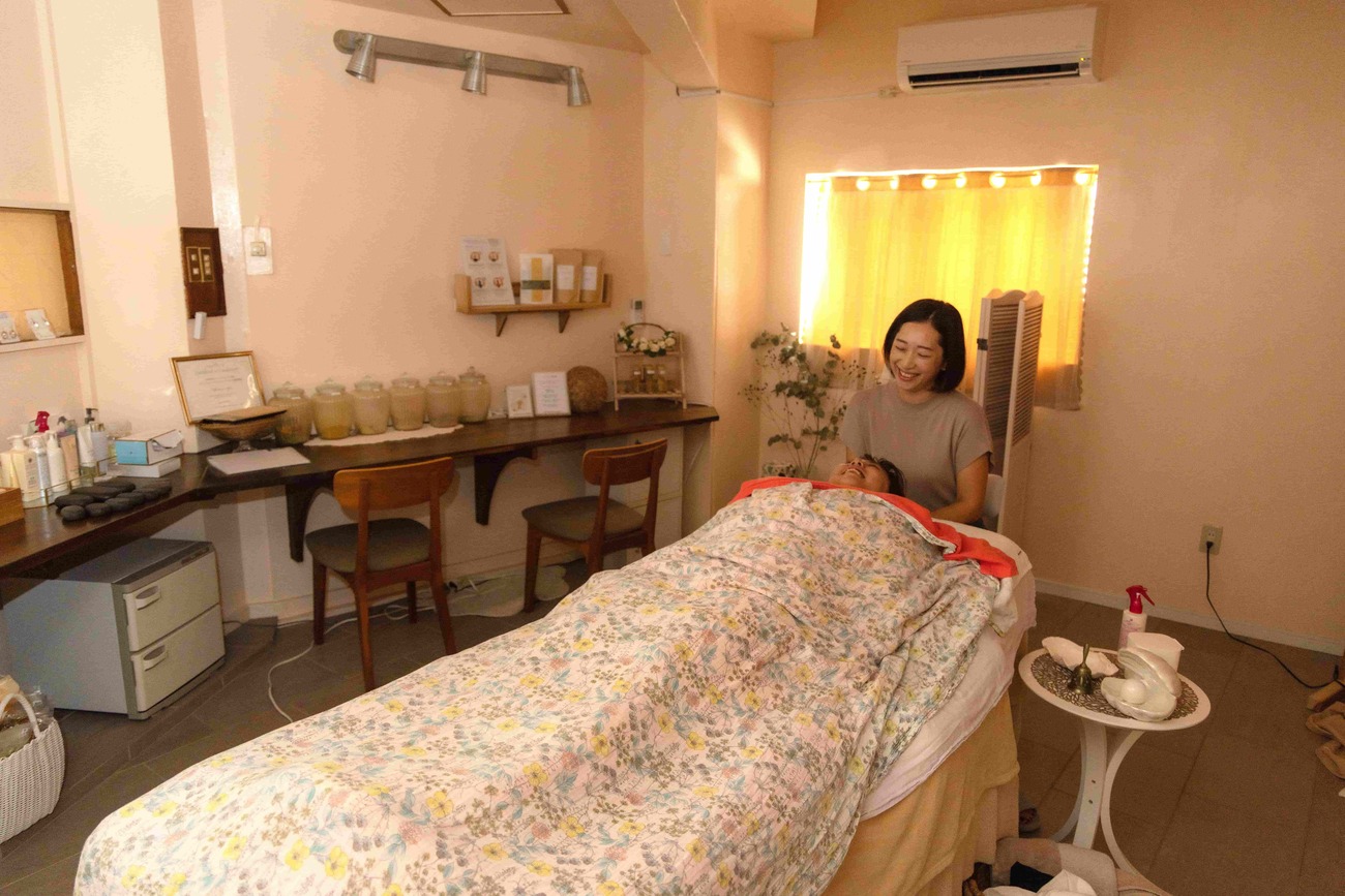 久米島のメインエリア・イーフビーチのすぐ近く、イーフコンドミニアム久米島内でリラクゼーションを提供している「Relaxation&Beauty EEF SHORE」。島での日常を忘れ、心から癒される時間を過ごしてほしいと考えるオーナーが、多彩なメニューを提供しています。ヘッドマッサージやフェイシャルエステ、アロマトリートメントなど、ニーズに合わせて様々なメニューを組み合わせることも可能です。特におすすめなのが、ハーブテントとヘッドマッサージ。まずはハーブティを飲んでリラックスし、その後ハーブテントでじっくりと汗をかきます。皮脂腺からの汗は天然の美容液とも言われ、デトックス効果があるのだそう。ハーブテントの温度は約40度で、お子さんと一緒に楽しむこともできます。他のメニューと組み合わせることで、美容やリラックス効果はさらに高まりますよ。旅行は自分へのご褒美。リラクゼーションをプランに取り入れるのは大人の贅沢です。天気が悪い日や、レジャーを楽しんだあと、また癒しに満ちた久米島旅行の締めくくりとして利用してみてください。